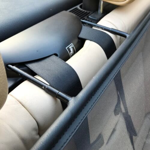 De montage van het windscherm is in bijna alle gevallen eenvoudig. Het wordt bevestigd aan weerskanten van de achterbank, zonder extra gereedschap.